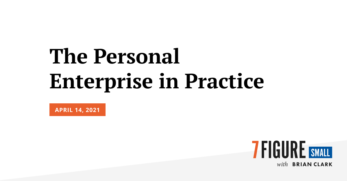 Last week, Brian and I discussed the personal enterprise approach in general. This week, it’s time to discuss the personal enterprise in practice.